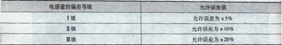表2-7 電感量的誤差等級及允許誤差值