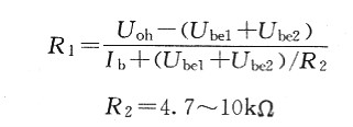 圖7-6(a)、(b)中三極管的集電極負載為繼電器KA線圈。其工作電流為lOOmA。若晶體管的β=25,則需求4mA的基極電流。這對與非門來說是個拉電流負載。如與非門不能提供這樣大的拉電流,可采用圖7-6(b)所示的電路。由電阻Ri、二極管VD1和穩壓管Vs組成變換電路。當與非門輸出高電平常,VD1截止。VS擊穿,晶體管VT的基極電流由+15V電源經R1、VS和V1的發射結來提供,VT導通,繼電器KA吸合。當與非門輸出低電1平常,灌電流經+15V電源經R1、VDi流入與非門,這個電流只要幾毫安,這樣可防止岡拉電流過大而惹起輸出高電平的降落。這時VS截止,VT截止,KA釋放。
