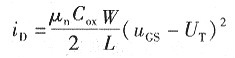 式中,UT為開啟電壓(或閾值電壓);μn為溝道電子運動的遷移率;Cox為巾位面積柵極電容;W為溝道寬度;疋為溝道長度;W/L為MOSFET的寬長比。在MOSFET集成電路設(shè)計中,寬長比是一個極為重要的參數(shù)。