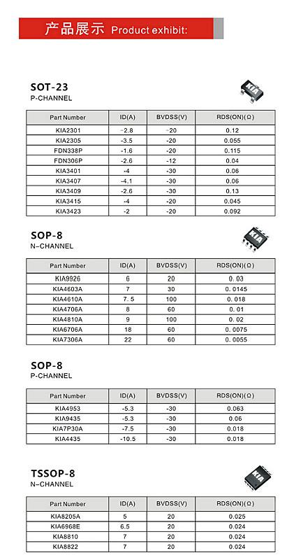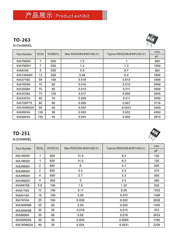 KIA本著“攜手客戶,創新設計,共同提升,服務市場”的理念,期待在您的大力支持下,使KIA成為MOSFET器件領域的優秀mos管品牌。