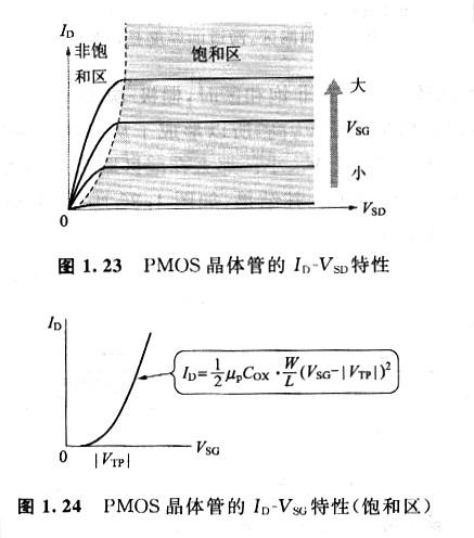 如果采用各電壓的絕對(duì)值,那么漏極電流的式(1.1)和式(1.4)也分別適用NMOS晶體管和PMOS晶體管;