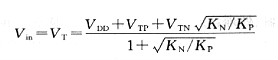 由于邏輯閾值電壓是式(10.1)中的-IDS與式(10.2)中的IDS相等時的電壓,所以應用這個關系能夠求得Vin: