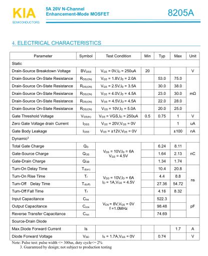 電池保護板-工作原理應用領域與元件參數表-KIA mos管