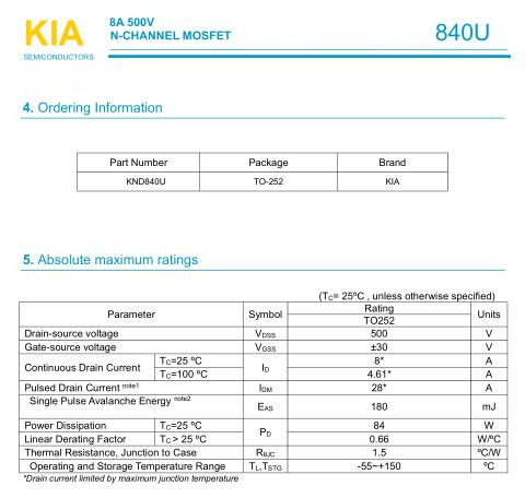 JCS5N50RC替代KND840U規格書