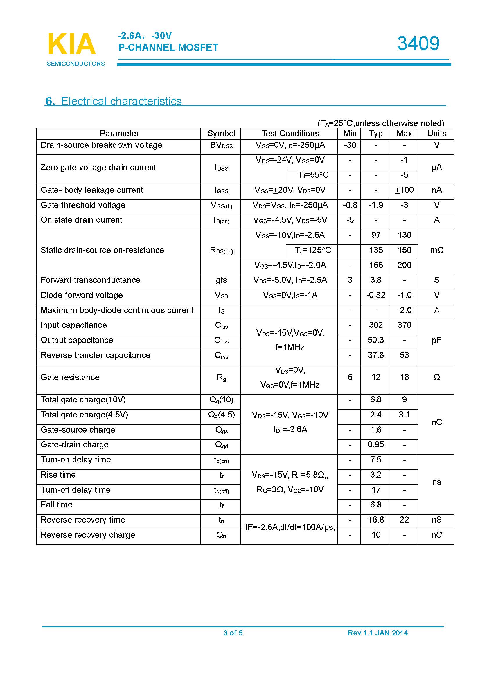 參數: ID(A): -2.6 BVDSS(V): -30 RDS(ON): 0.13 Qg(nC): 9 Package: SOT-23