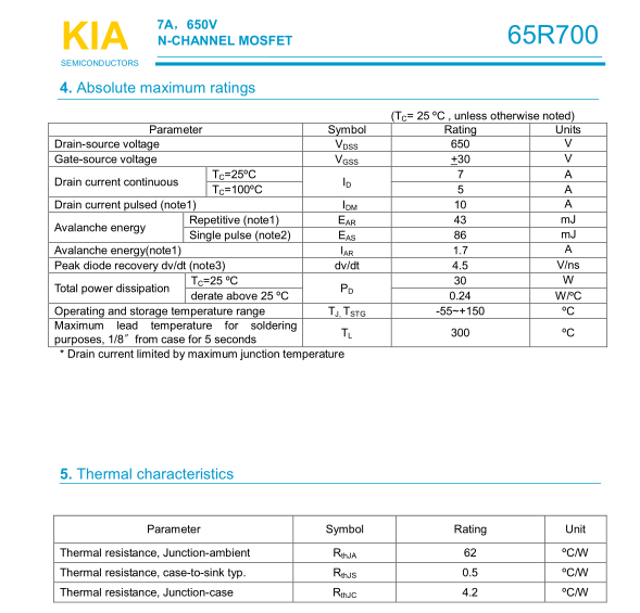 參數: ID(A): 7 BVDSS(V): 650 RDS(ON): 0.6 Qg(nC): 8 Package: TO-251、252、220F