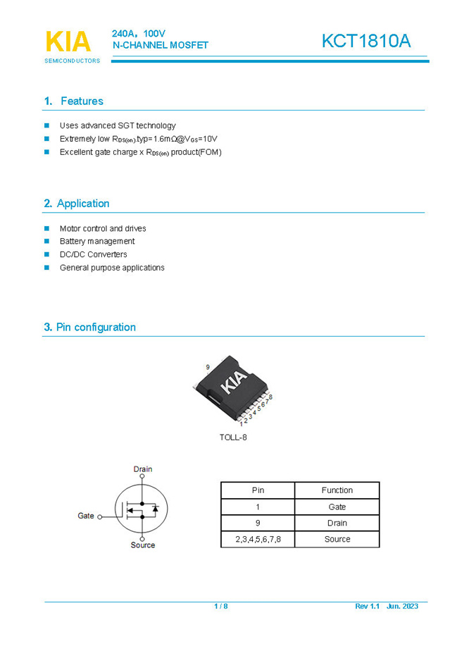 參數(shù): ID(A): 240 BVDSS(V): 100 RDS(ON): 1.6mΩ Qg(nC): 165 Package: TOLL-8