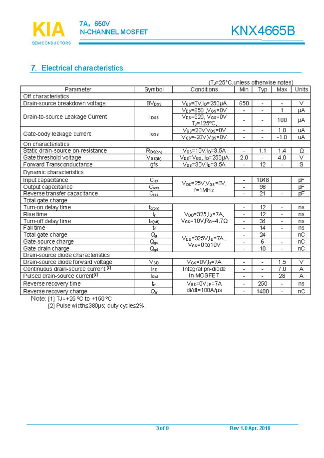 參數: ID(A): 7 BVDSS(V): 650 RDS(ON): 1.1Ω Qg(nC): 24 Package: TO-220F.TO-252