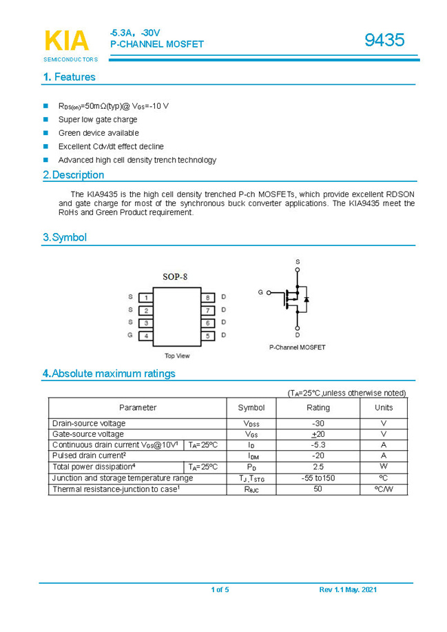 參數(shù): ID(A): -3.5 BVDSS(V): -30 RDS(ON): 50mΩ Qg(nC): 12 Package: SOP-8