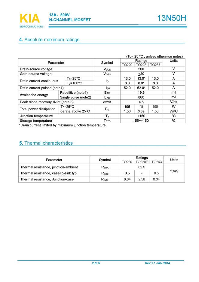 參數: ID(A): 13    BVDSS(V): 500    RDS(ON): 0.48    Qg(nC): 45    Package: TO-263、TO-220、TO-220F