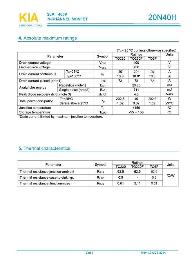 參數: ID(A): 20 BVDSS(V): 400 RDS(ON): 0.25 Qg(nC): 50 Package: TO-220、TO-220F、TO-3P
